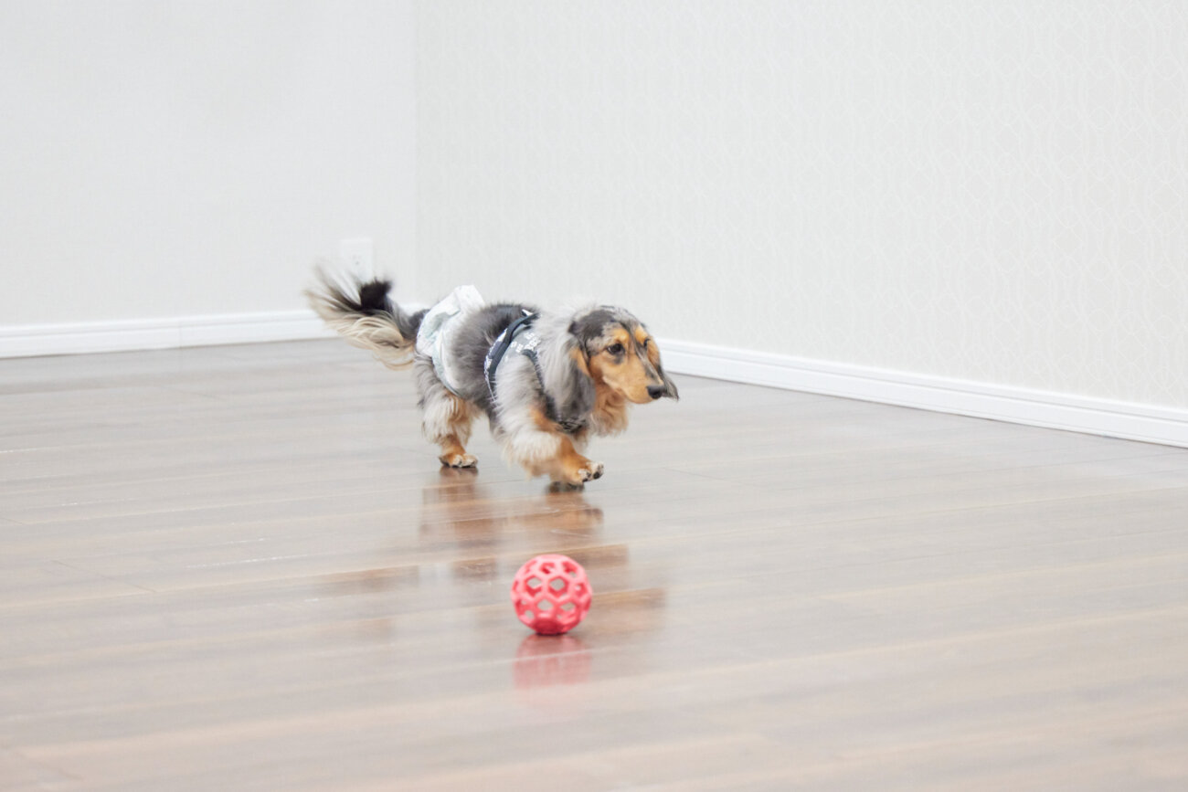 リビングを走ったり、おもちゃで引っ張り合いをしても、後ろ足に負担がかかりにくいのです。